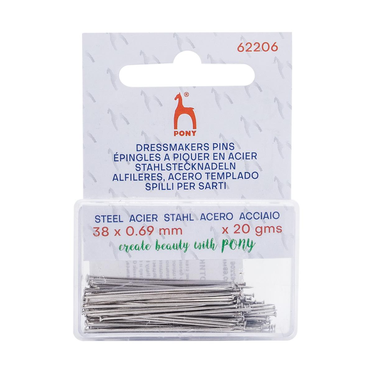 Портновские булавки PONY с головками в форме шляпки гвоздя – наиболее распространенный тип булавок. Такие булавки широко используются в быту, при шитье одежды или примерке. Применяются также при раскрое, примерке, пошиве изделий из текстиля, создании различных поделок. Используйте их, чтобы: