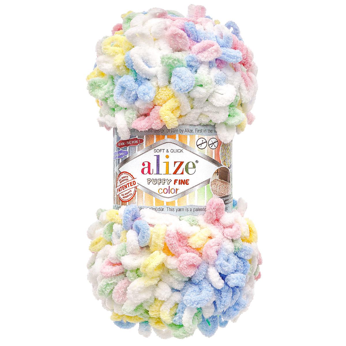 Alize puffy fine color - пряжа с петельками для вязания руками. Отличительной чертой пряжи Ализе Пуффи Файн являются маленькие петельки высотой 2 см. По сравнению с традиционной пряжей Alize puffy, размер петелек здесь уменьшен в два раза, что делает работу с материалом более комфортной.