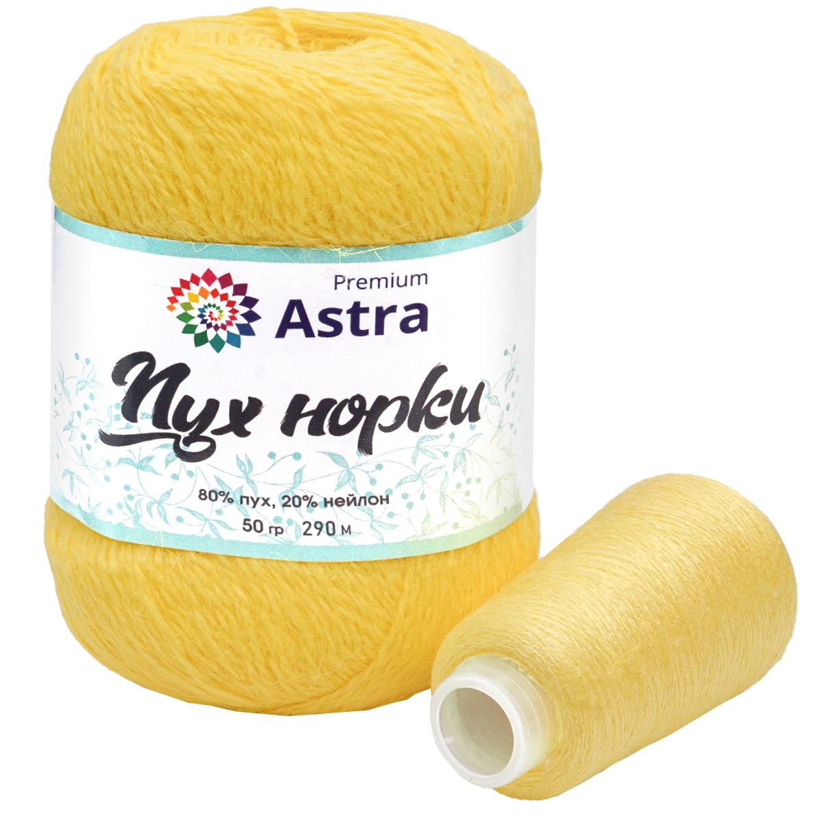 Пряжа Astra Premium 'Пух норки' (Mink yarn) 50гр 290м (+/- 5%) (80% пух, 20% нейлон) (+нить 20гр) 027 лимонный