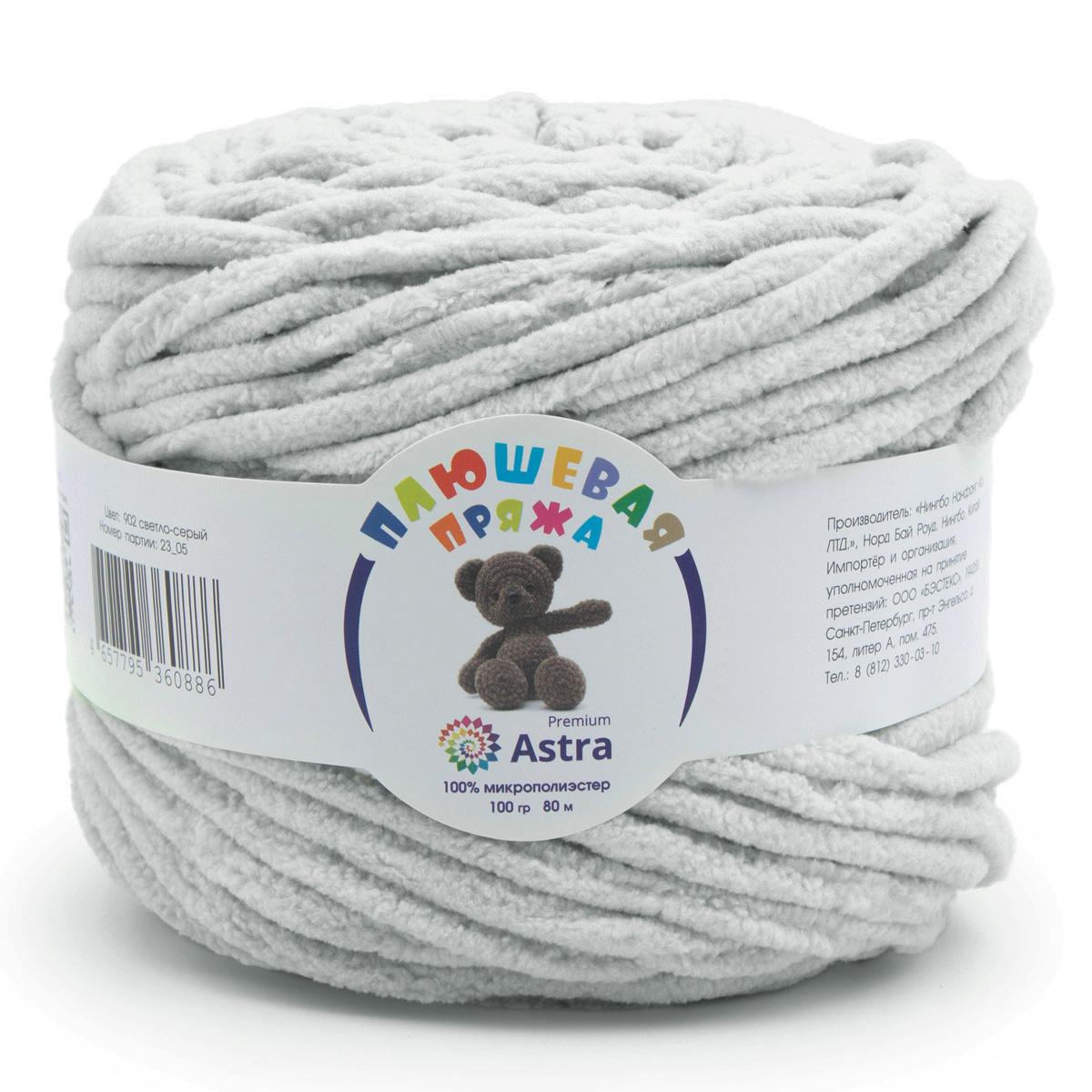 Пряжа Astra Premium 'Плюшевая' 100гр 80м (100% микрополиэстер) 902 светло-серый
