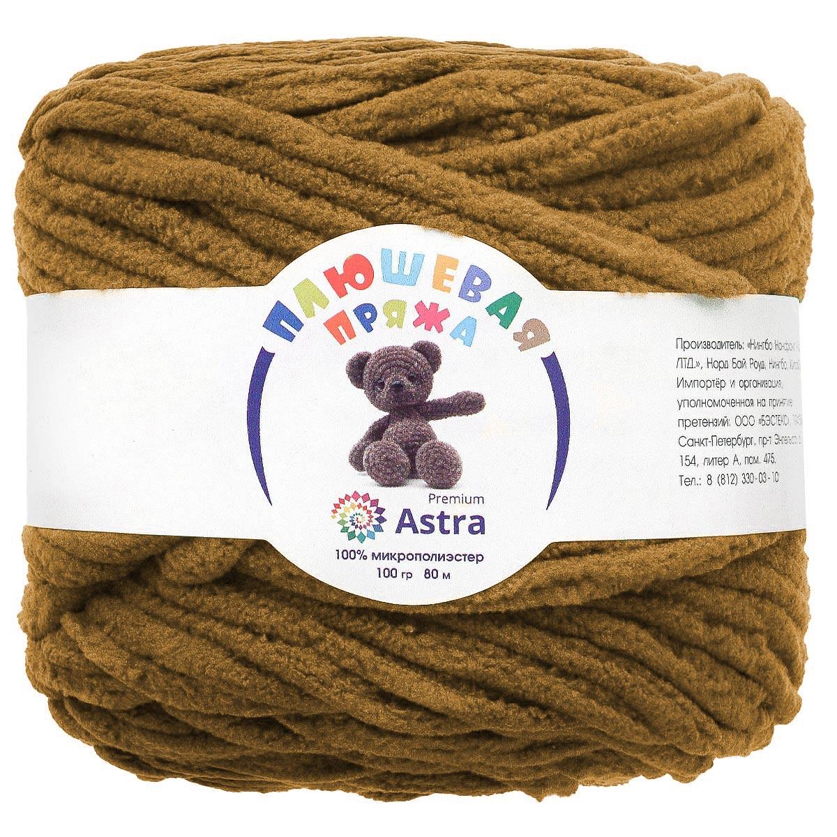 Плюшевая' от Astra Premium – пряжа тончайшим пушистым ворсом, который придает вещам мягкость и объем. Нить изготовлена 100% микрополиэстера, этот материал не раздражает кожу, сохраняет форму и цвет длительное время.