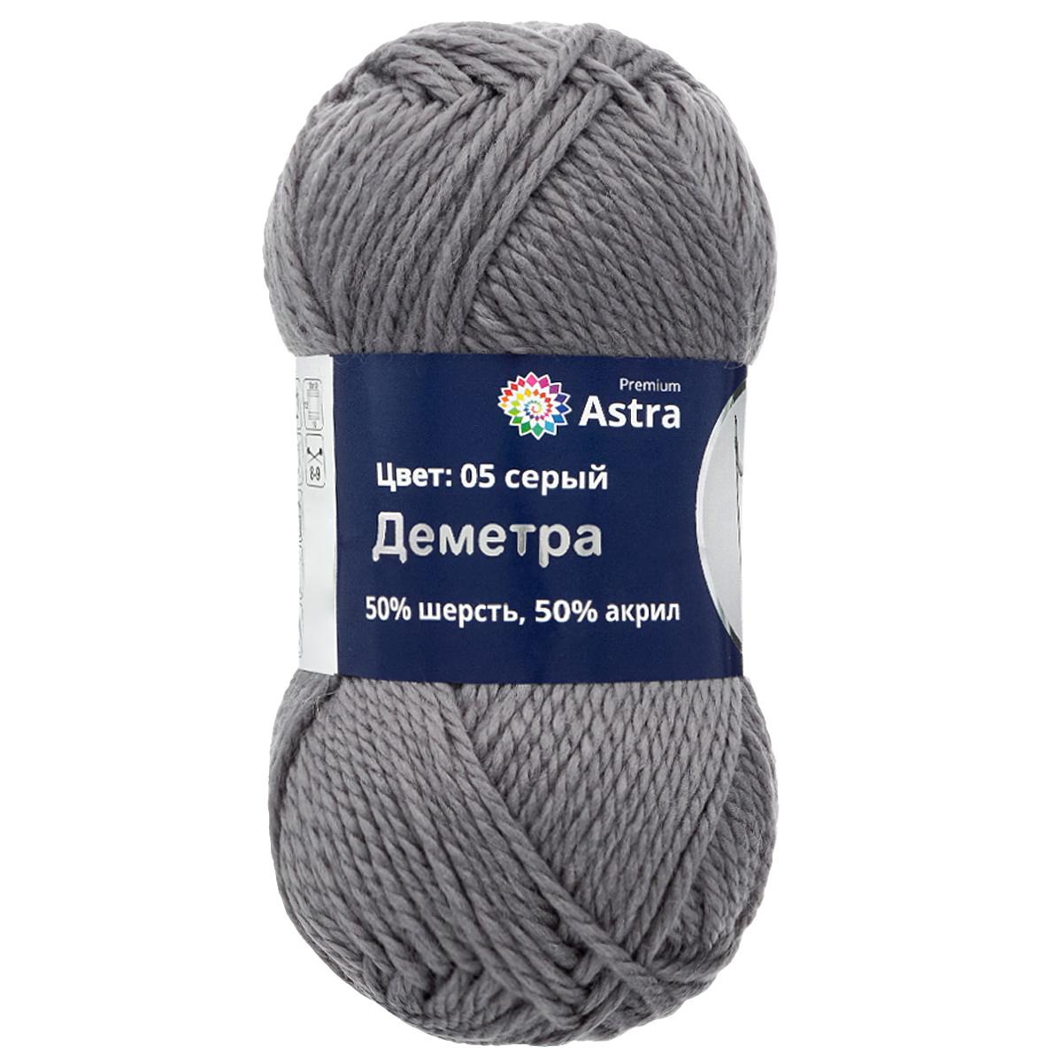Пряжа Astra Premium 'Деметра' 100гр. 100м (50% шерсть, 50% акрил) 05 серый