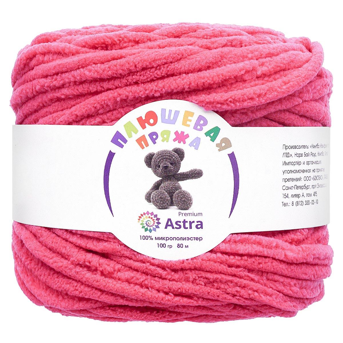 Плюшевая' от Astra Premium – пряжа тончайшим пушистым ворсом, который придает вещам мягкость и объем. Нить изготовлена 100% микрополиэстера, этот материал не раздражает кожу, сохраняет форму и цвет длительное время.