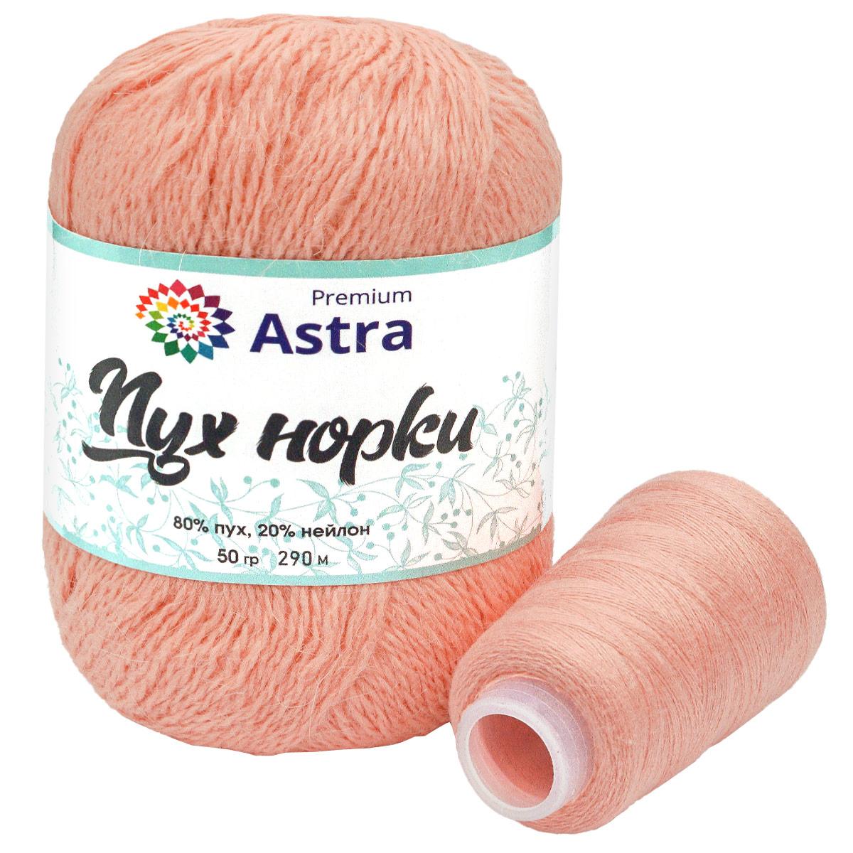 Пух норки (Mink yarn) от Astra Premium- пряжа для воздушных и согревающих вещей с выраженным ворсом. В процессе вязания нить не пушится, не спутывается, с ней удобно работать. Однако после влажной тепловой обработки ворс раскроется, изделие станет мягким и воздушным. Чтобы ворс лучше раскрылся, рекомендуем выбирать неплотную вязку. Чтобы вещи лучше сохраняли форму при ношении и после стирки, добавьте стабилизирующую нить из нейлона- она входит в комплект и совпадает с пряжей по цвету.