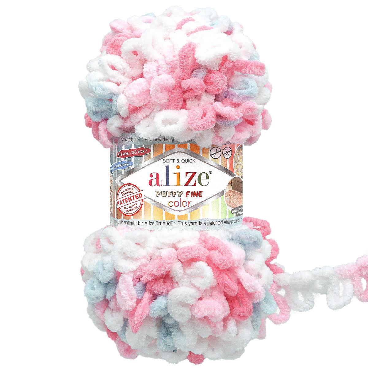 Alize puffy fine color - пряжа с петельками для вязания руками. Отличительной чертой пряжи Ализе Пуффи Файн являются маленькие петельки высотой 2 см. По сравнению с традиционной пряжей Alize puffy, размер петелек здесь уменьшен в два раза, что делает работу с материалом более комфортной.