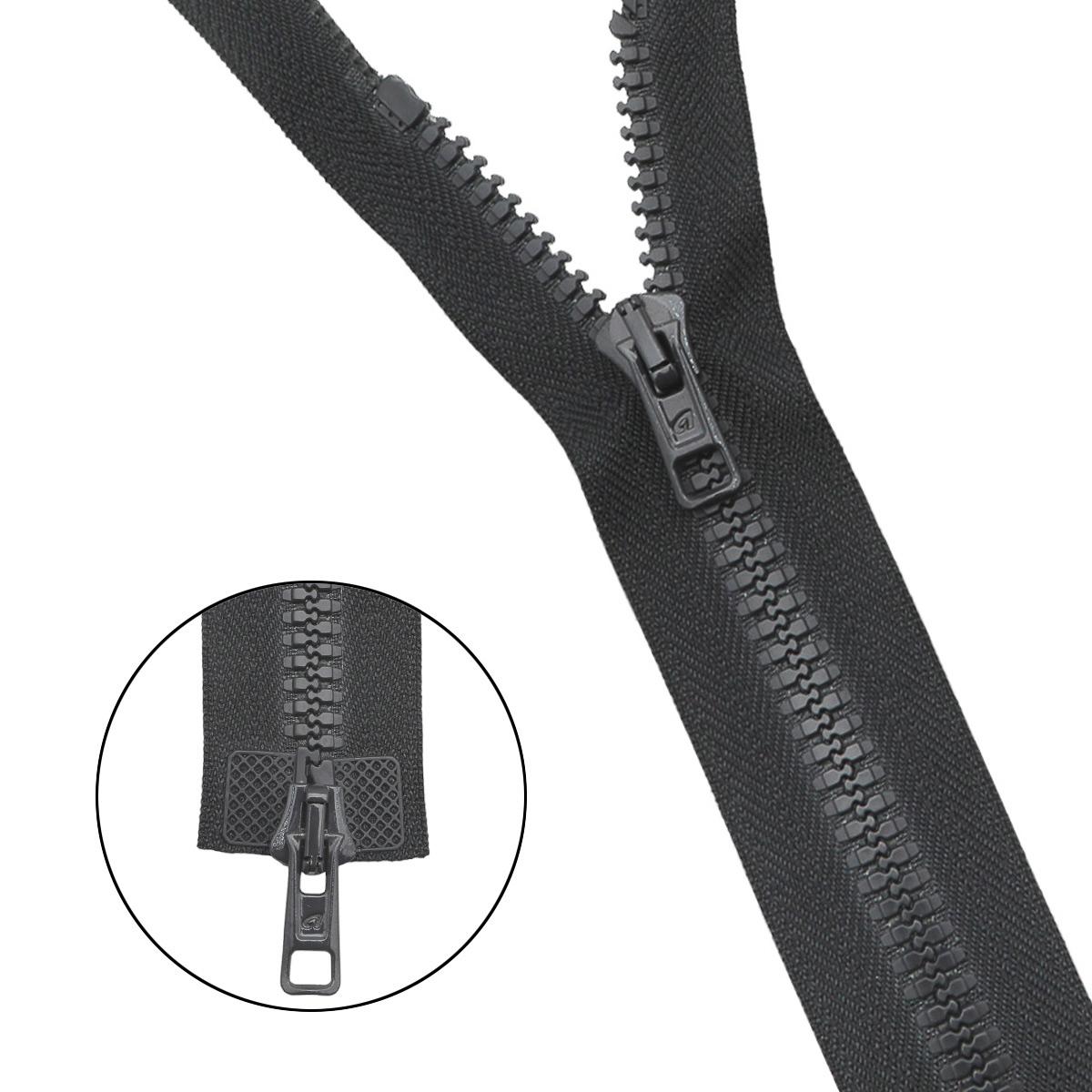 Прочность молнии увеличена за счет использования обновленного узла разъема и замка повышенной прочности, конструкция которого препятствует расхождению и обеспечивает ультра-легкий ход. Износостойкость изделия подтверждена испытаниями, срок эксплуатации более 6 000 циклов. Специальная конструкция усиленных звеньев предотвращает попадание ткани в замок.