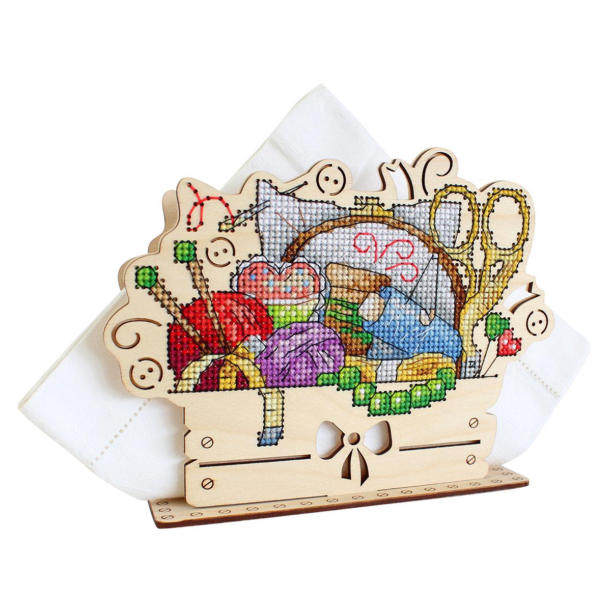 Набор для вышивания салфетницы на деревянной основе Рукодельный уголок представляет собой уникальную возможность создать красивую и оригинальную вышивку с минимальными усилиями. Основа из фанеры не только обеспечивает прочность и долговечность работы, но и создает особый эстетический эффект, подчеркивая натуральность и теплоту материала.