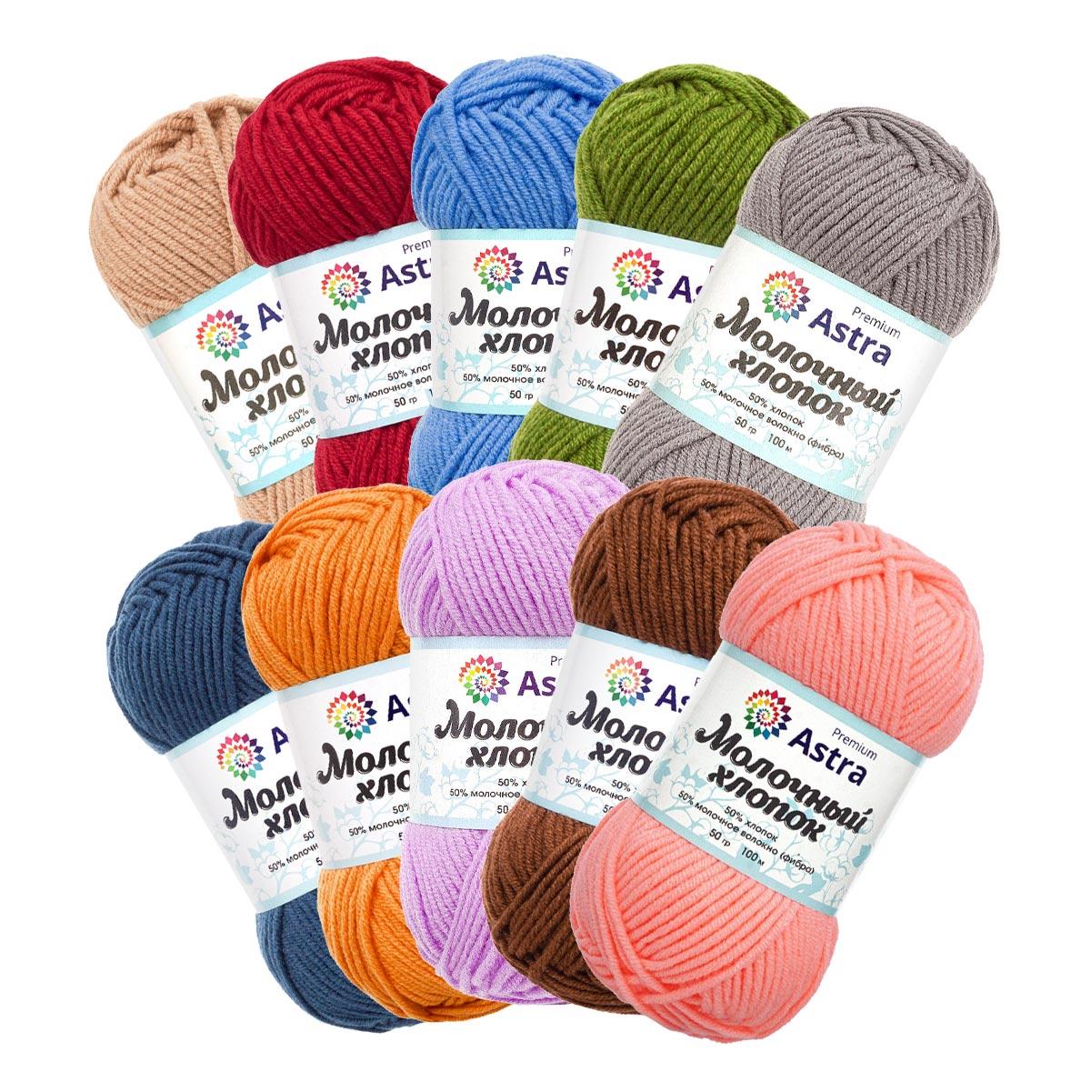Пряжа Astra Premium 'Молочный хлопок' (Milk Cotton) ассорти №3 10 цв (50%хлопок, 50%молочный акрил)