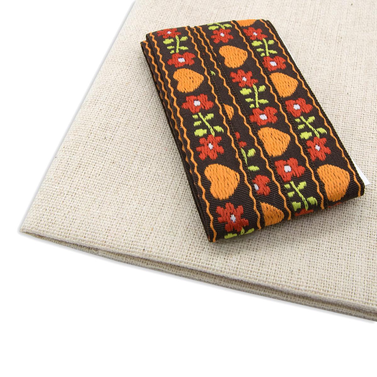 Лоскут хлопчатобумажной ткани с жаккардовой тесьмой – основа для ваших поделок. Лента и ткань идеально сочетаются между собой по цвету и рисунку.