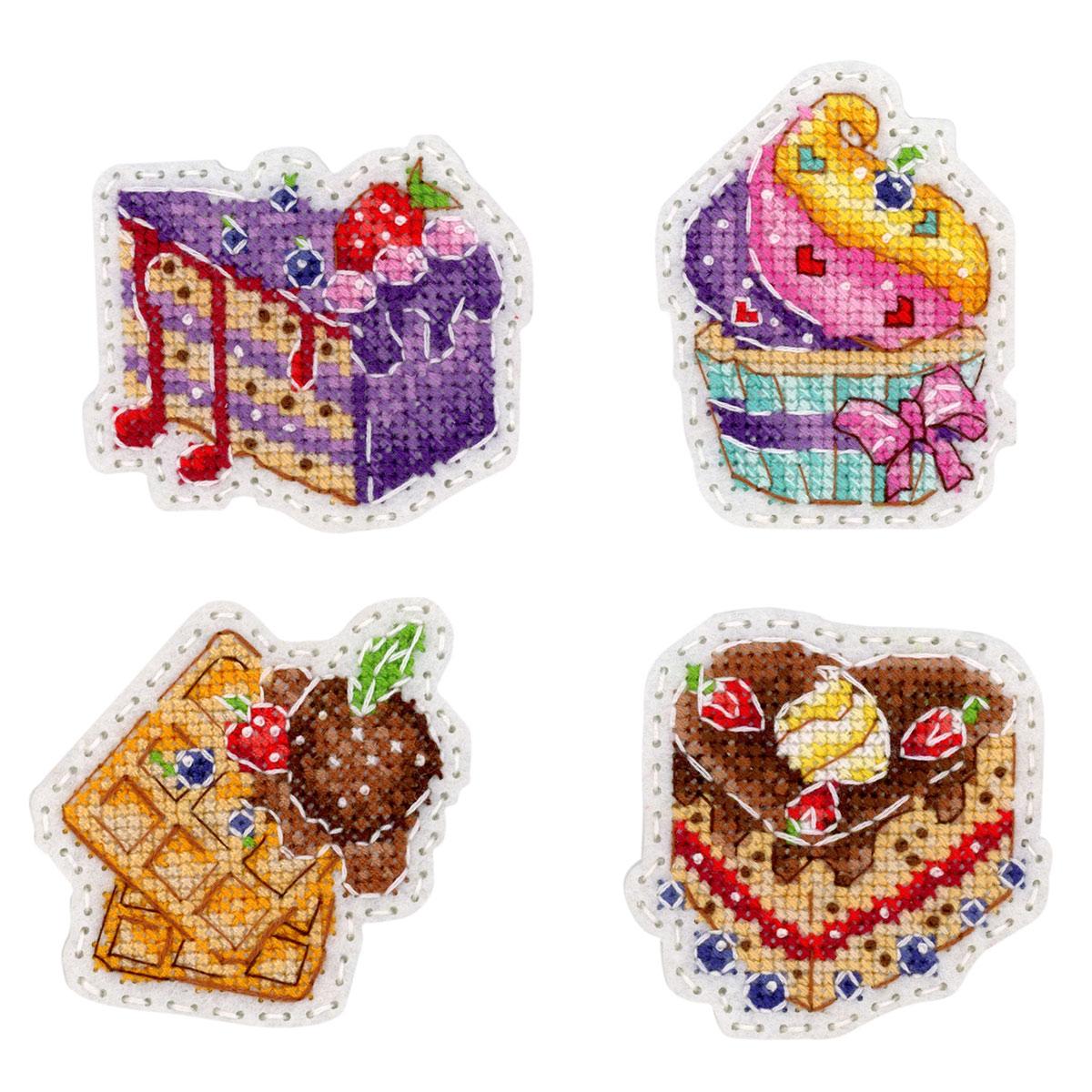Набор для вышивания магнитов-значков на перфорированном фетре Десерты представляет собой уникальную возможность создать красивую и оригинальную вышивку с минимальными усилиями. Готовые магниты или значки станут яркими и оригинальными аксессуарами, которые поднимут настроение и украсят любое пространство.