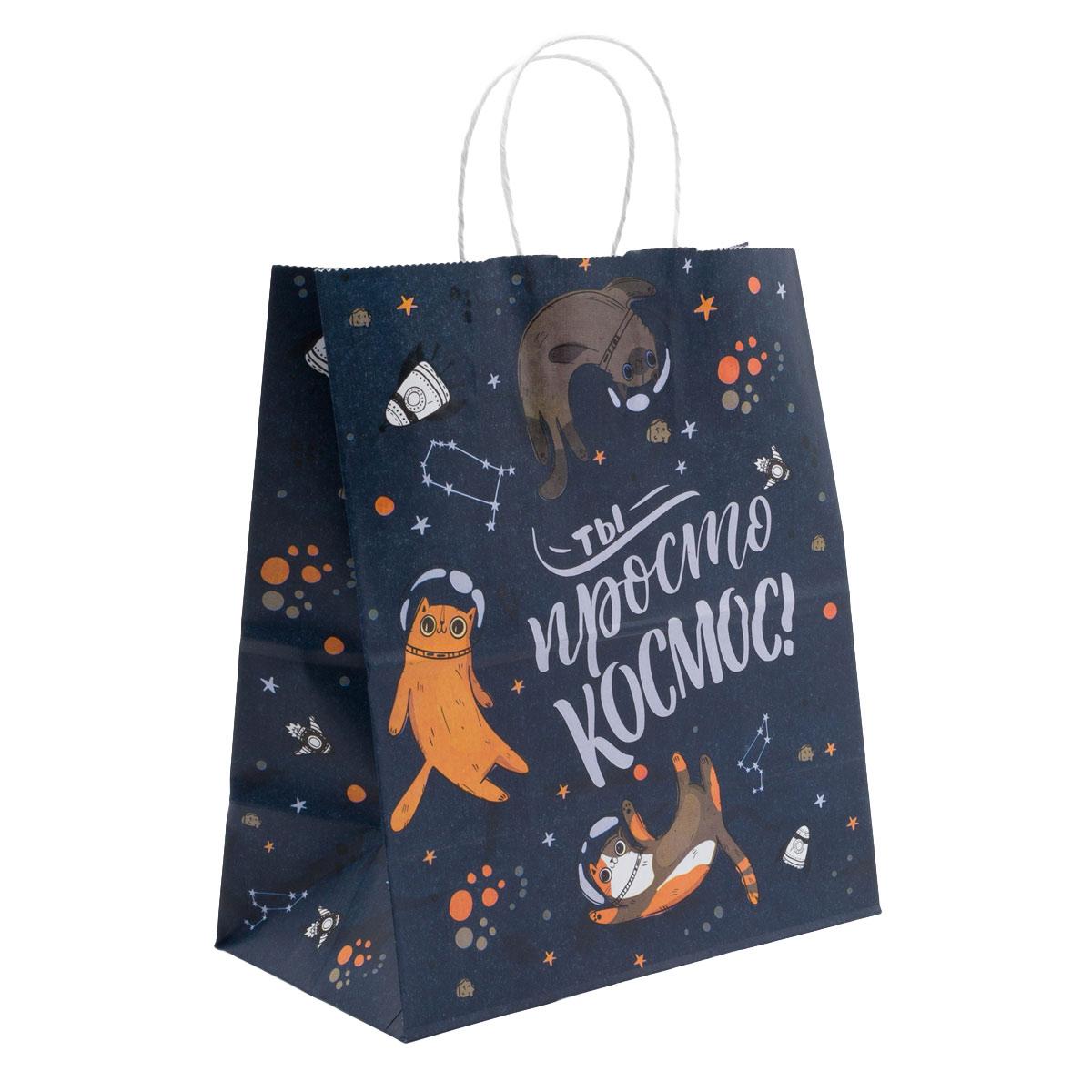Крафтовый пакет с оригинальным дизайном 'Ты просто космос' изготовлен из высококачественной крафт-бумаги плотностью 100 г/м². Любители и поклонники космоса будут в восторге!