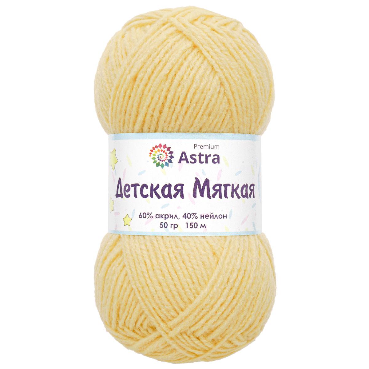 Пряжа Astra Premium 'Детская мягкая' (Baby Soft) 50гр 150м (60% акрил, 40% нейлон) 02 светло-желтый