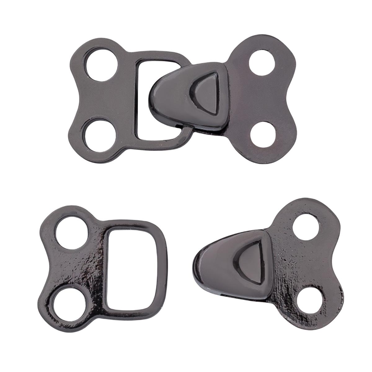 Крючок-петля универсальный пришивного типа, предназначен для одежды из легких тканей и тканей средней плотности, а также бельевых изделий: корсетов, боди. Подойдет для изделий самого разного стиля: от классического до современного. Позволяет оформить застежку на блузке, блейзере, юбке, другой деловой одежде. Изготовлен из металла, устойчив к износу, не теряет цвет от стирки, защищен от коррозии. Застежка не требует специальных инструментов для установки, легко пришивается на нить, быстро застегивается и расстегивается.