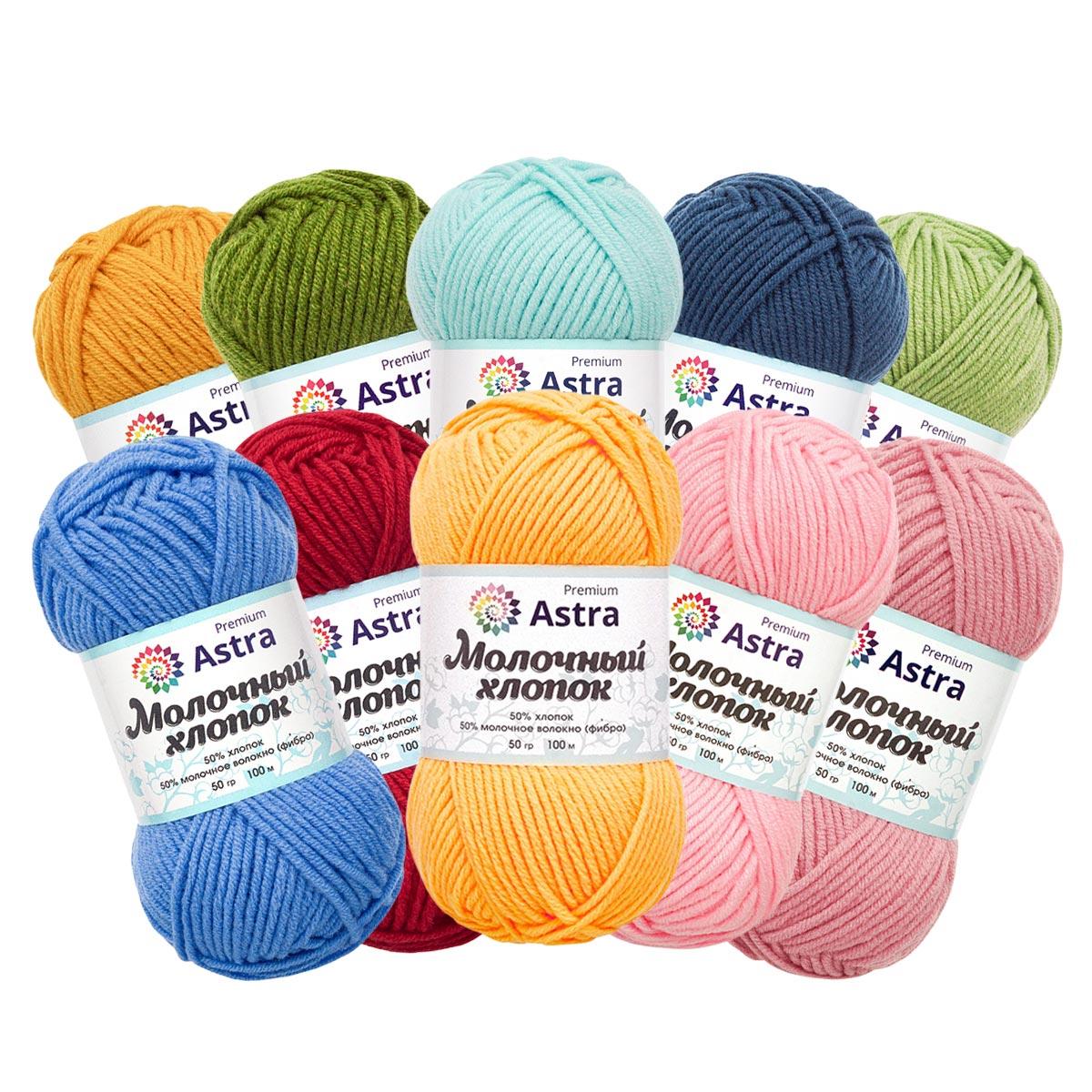 Готовый набор мягкой летней пряжи от Astra Premium 'Молочный хлопок' (Milk Cotton) с необычным составом. На 50% она состоит из молочного акрила – этот материал получают из продуктов молочного производства, обрабатывают и вытягивают в нити. Получается легкое объемное волокно. Для прочности молочный акрил смешивают с другими волокнами. Мы добавили хлопок, и получилась очень мягкая пряжа с небольшим блеском.