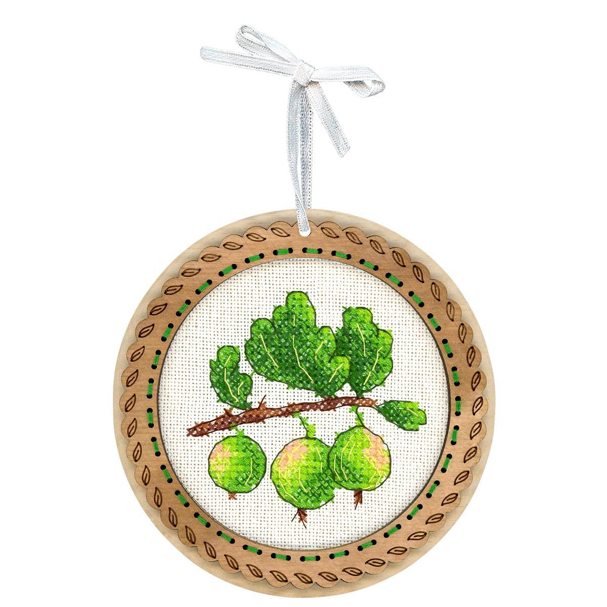 Вышивка крестиком набор на деревянной основе Миниатюра. Дачные ягоды. Крыжовник представляет собой уникальную возможность создать красивую и оригинальную вышивку с минимальными усилиями. Деревянная рамка не только обеспечивает прочность и долговечность работы, но и создает особый эстетический эффект, подчеркивая натуральность и теплоту материала.