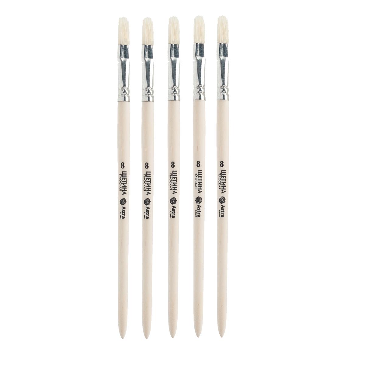 Материал рабочей части кисти- натуральная щетина. Плоские кисточки для рисования набор №8 с щетиной подходят для работы с тяжелыми и плотными красками- маслом, темперой, акрилом.