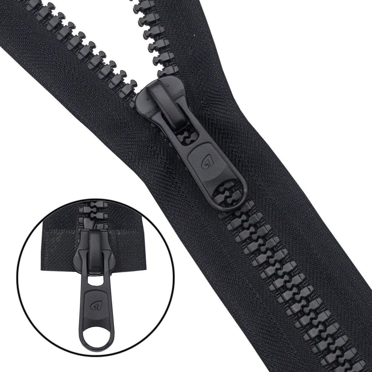 Прочность молнии увеличена за счет использования обновленного узла разъема и замка повышенной прочности, конструкция которого препятствует расхождению и обеспечивает ультра-легкий ход. Износостойкость изделия подтверждена испытаниями, срок эксплуатации более 6 000 циклов. Специальная конструкция усиленных звеньев предотвращает попадание ткани в замок.