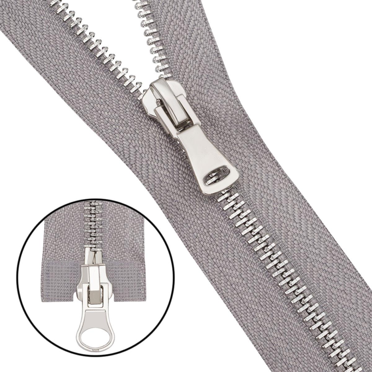 6535-0312 Молния металлическая Т5 2 замка 75см, никель 340 св.серый