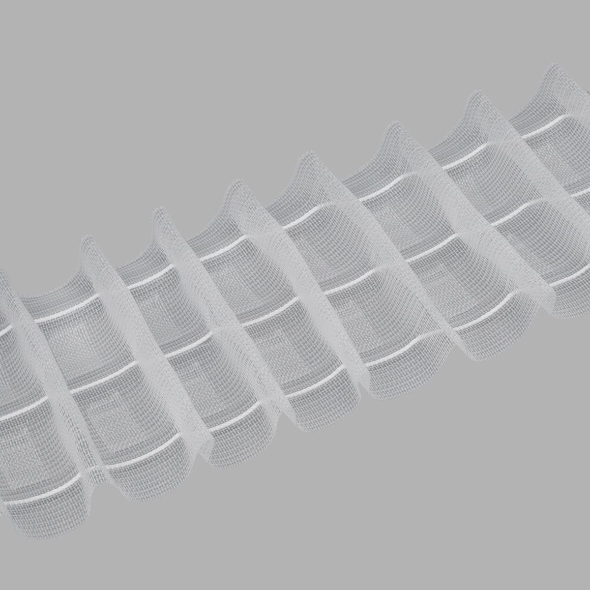 Конструкция тесьмы предусматривает два ряда петель и три прочных шнура, благодаря которым можно сформировать идеально ровные складки по всей длине полотна.