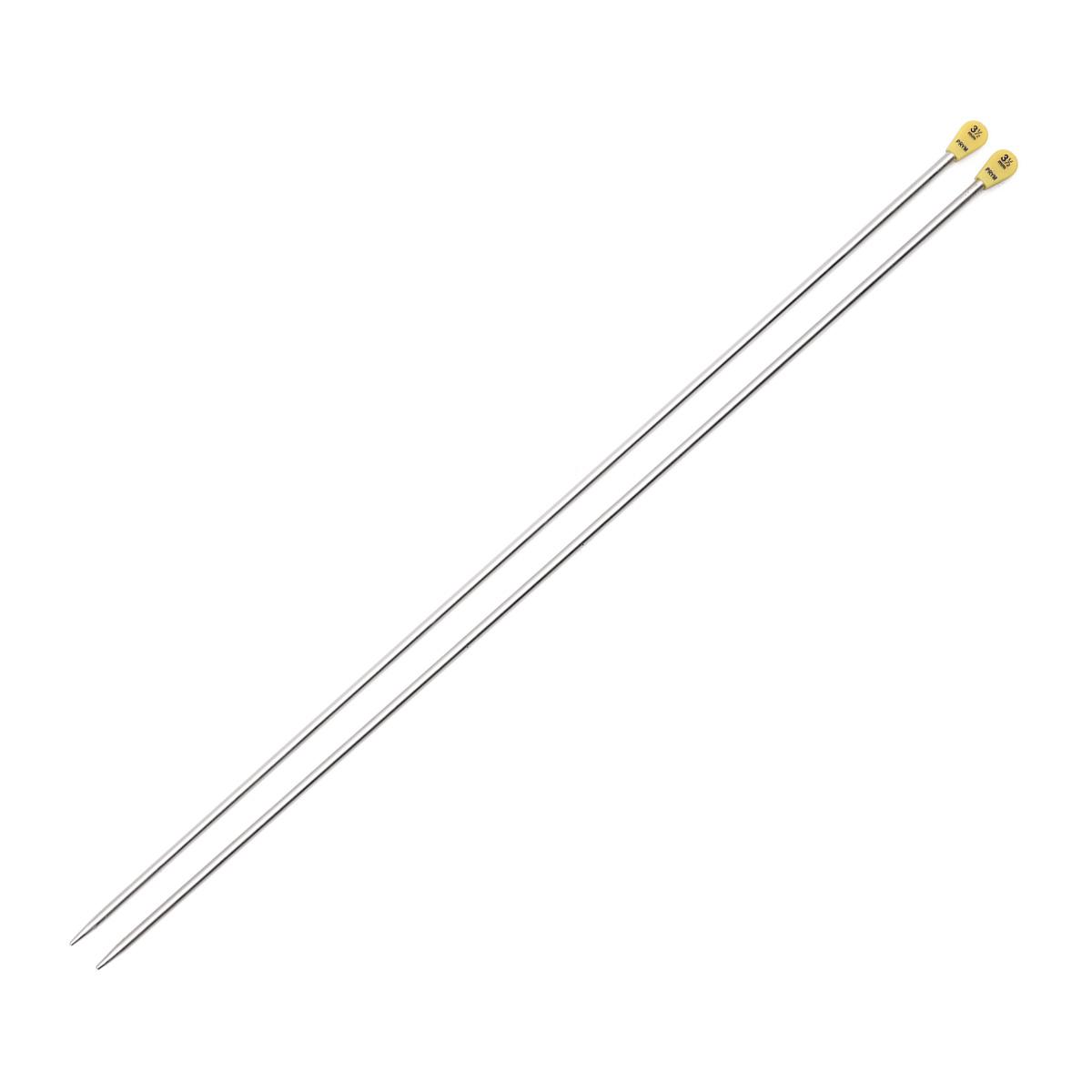 Прямые спицы серебристого цвета Prym подходят для вязания шарфов и крупных деталей одежды, таких как спинка и передняя часть свитера, жилетки или кофты. Изготовлены из практичного алюминия, имеют небольшой вес и гладкую поверхность. Подходят для работы с любой пряжей – шерстью, хлопком, акрилом, вискозой. Для защиты пальцев от травмирования кончики закруглены. Ограничители из яркого пластика препятствуют соскальзыванию петель. Маркировка на ограничителях позволяет легко подобрать нужный размер.