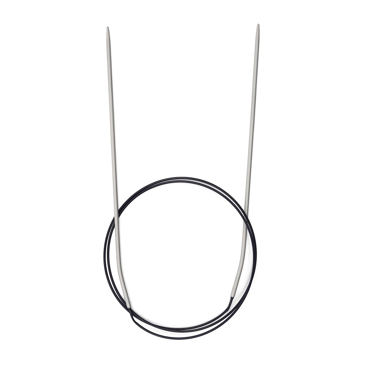 Круговые (циркулярные) спицы с тросиком длиной 80 см. С гибкой пластиковой леской. На переходе к леске слегка изогнуты для удобного перекидывания и снятия петель. Спицы изготовлены из легкого алюминия, универсальные, подходят для шерсти, хлопка, акрила и других материалов. Концы слегка закруглены для защиты пальцев от травмирования.