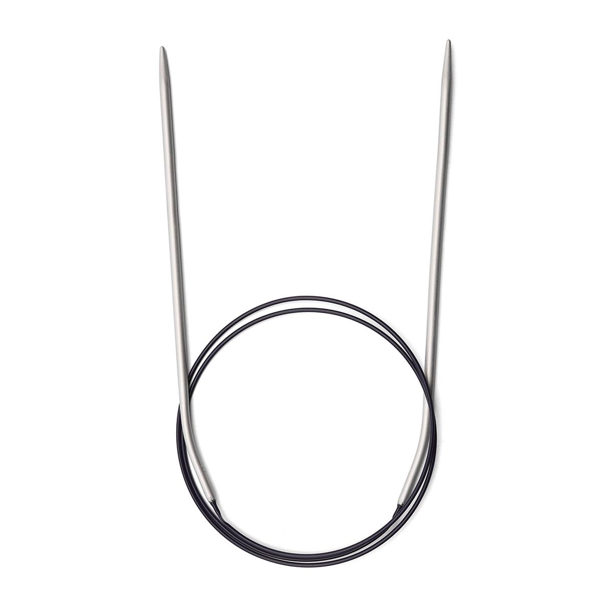 Круговые (циркулярные) спицы с тросиком длиной 80 см. С гибкой пластиковой леской. На переходе к леске слегка изогнуты для удобного перекидывания и снятия петель. Спицы изготовлены из легкого алюминия, универсальные, подходят для шерсти, хлопка, акрила и других материалов. Концы слегка закруглены для защиты пальцев от травмирования.