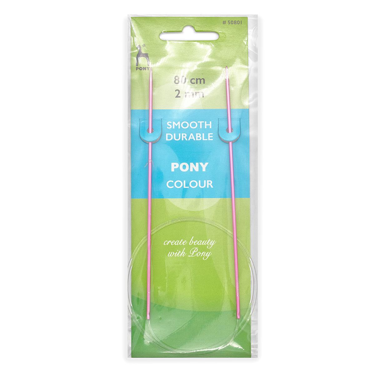 50801 Спицы вязальные круговые COLOUR 2,0 мм*80 см, алюм. PONY