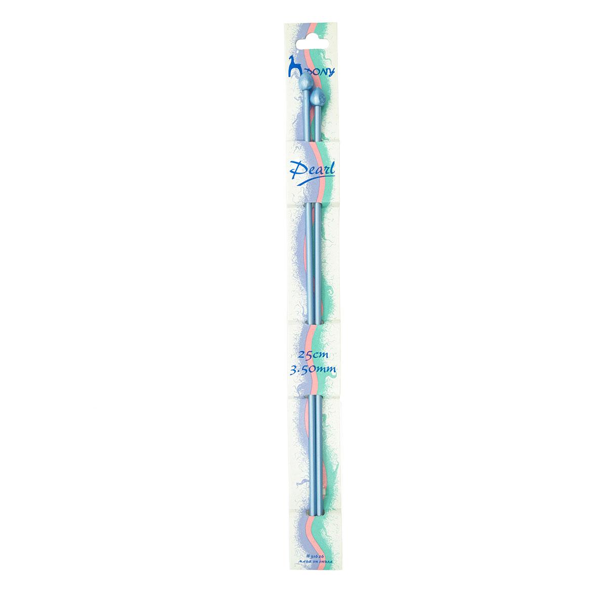 31626 Спицы вязальные прямые PEARL 25 см*3,5мм, синий, пластик, 2 шт, PONY