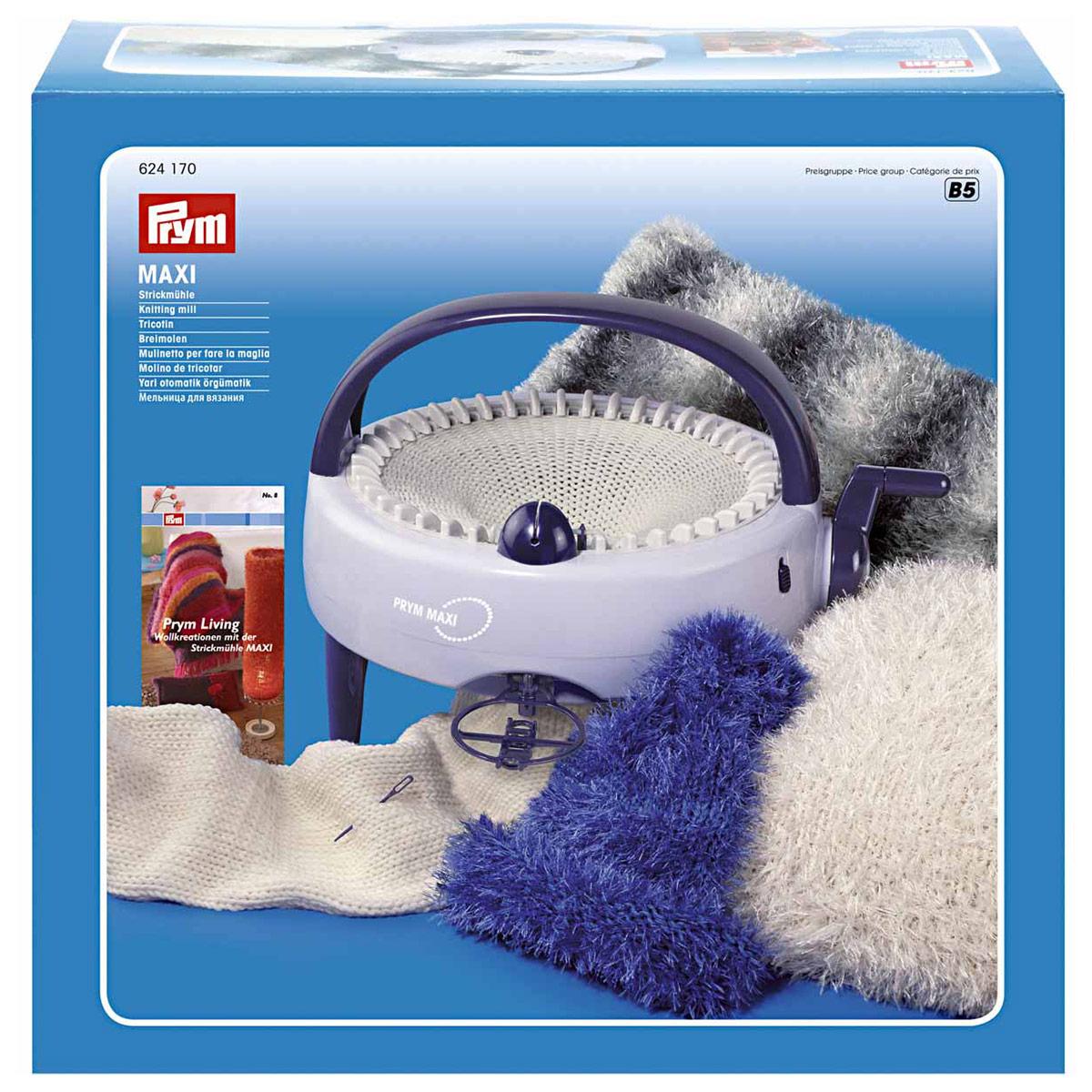 Мельница для вязания MAXI от широко известного немецкого бренда Prym приятно удивит мастериц своим качеством и порадует удобством в применении. Мельница для вязания представляет собой машинку для кругового и прямого вязания с полуавтоматическим управлением с помощью рукоятки. Мельница оснащена переключателем режимов, пластиковой иглой, устройством для натяжения нити, ручкой для транспортировки, прилагается подробная инструкция.