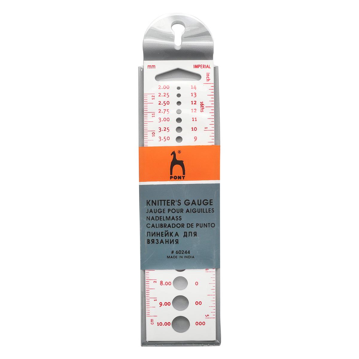 Линейка для измерения диаметра спиц от бренда Pony - это очень полезный атрибут для рукодельниц, любящих творить с комфортом, создающих вещи в различных техниках и из пряжи разной толщины. Линейка из пластика с отверстиями предназначена для измерения диаметра спиц.