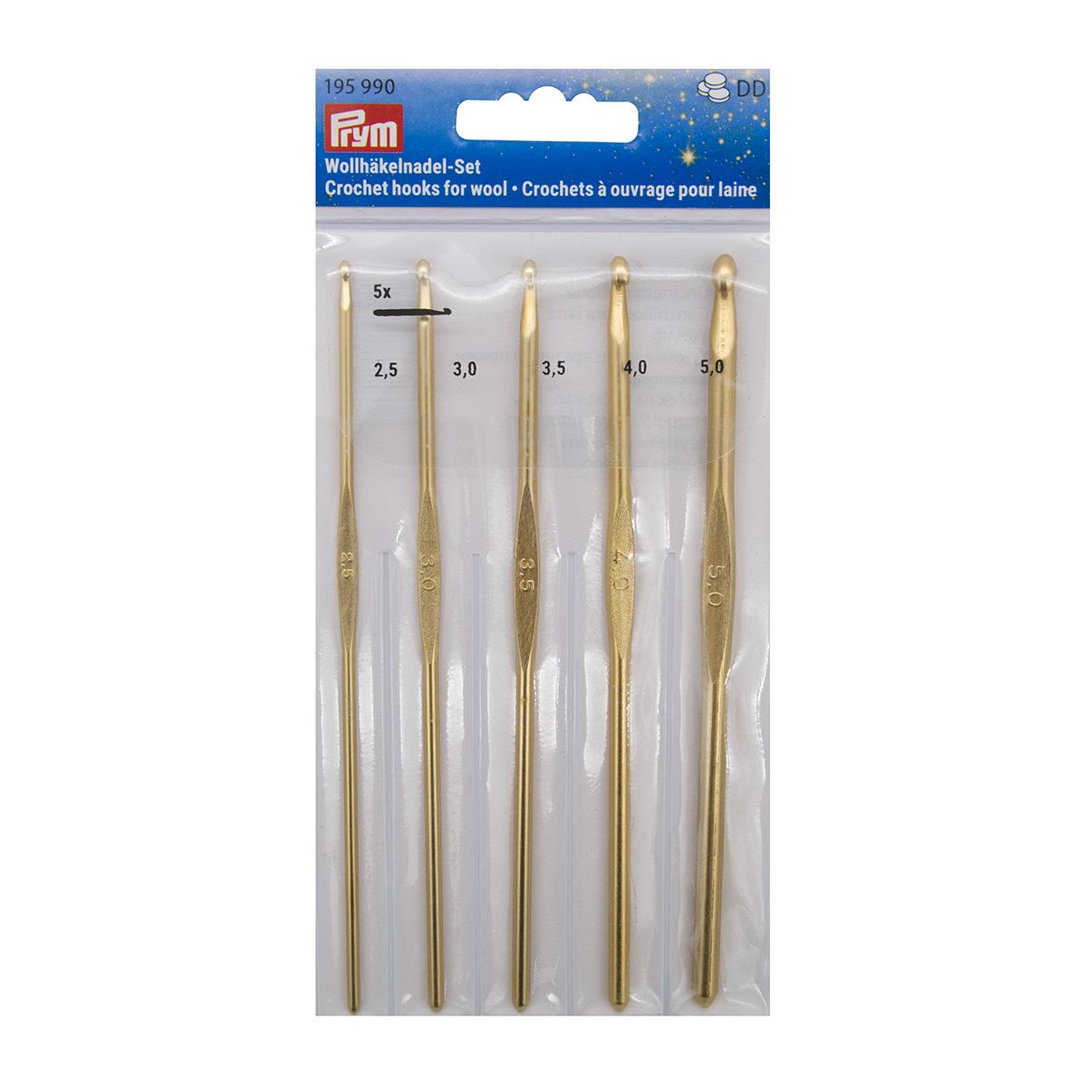 Набор крючков популярных размеров 2,5-5,0 мм позволяет работать над любыми проектами. Используйте их для вязания шалей, топов и летних платьев, головных уборов. Благодаря направляющей поверхности на ручке крючок не скользит, его удобно держать в руках. Крючки изготовлены из алюминия, поэтому они очень легкие и практичные. Благодаря покрытию цвета 'светлое золото' такой крючок станет украшением вашего рабочего места. Инструменты упакованы в пластиковый футляр с подложкой, который подходит для хранения.