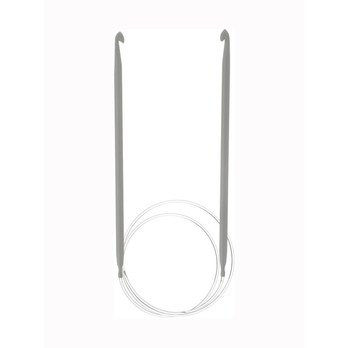 Крючки для вязания с тросиком от Pony порадуют рукодельниц своим качеством, оригинальным дизайном и удобством в применении. Крючки ориентированы на удобство при работе в тунисской (афганской) технике вязания. Два алюминиевых крючка с аккуратными головками классической формы объединены между собой гибким нейлоновым тросиком, как круговые спицы. Такая конструкция облегчает вывязывание объемных полотен с плотным узором и позволяет сократить расход пряжи. Идеально подходит для вязания различных бесшовных деталей одежды, а также носков или головных уборов.