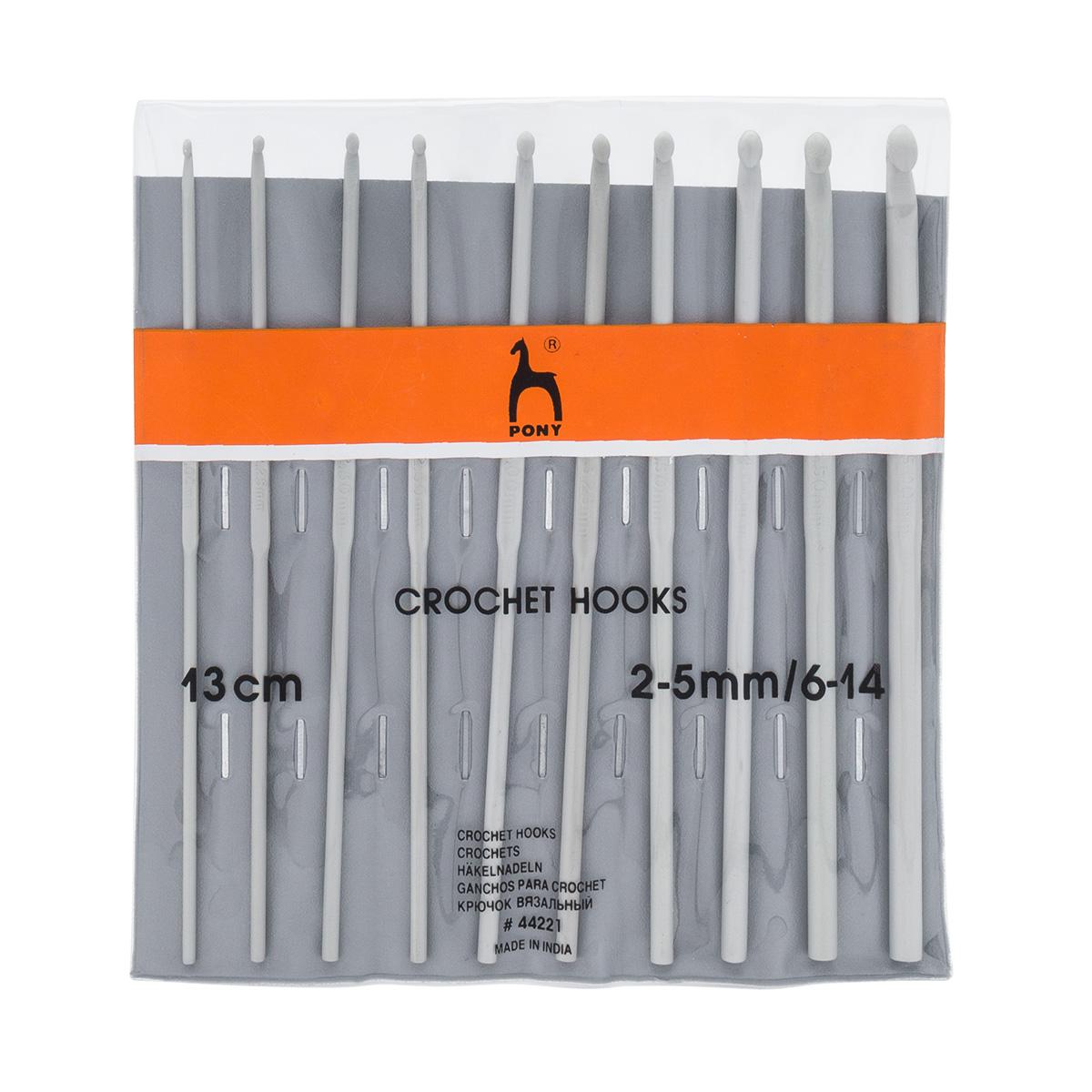 Набор крючков для вязания Crochet Hooks от бренда PONY включает в себя алюминиевые крючки, специально разработанные для работы с пряжей разной толщины и для создания воздушных и невероятно красивых ажурных полотен.