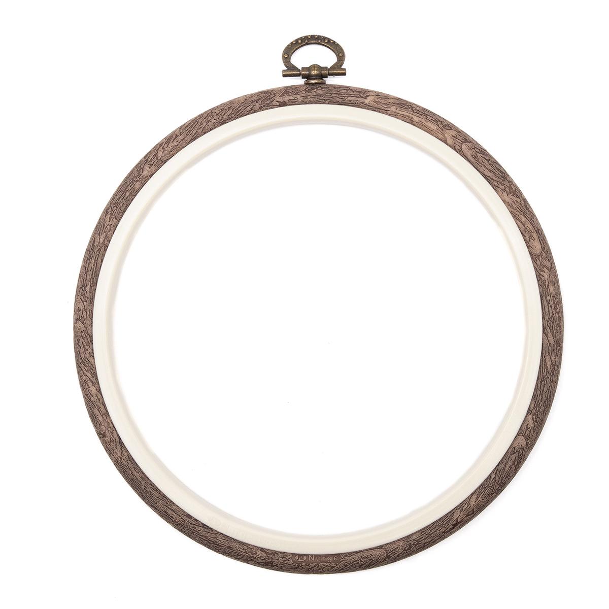 Круглые пяльцы Nurge Hobby с петлей подойдут на роль рамки: они помогут завершить композицию, не прибегая к услугам багетной мастерской. Отличный выбор для небольших сюжетов с частичной зашивкой: рамка создаст контуры и не будет перетягивать на себя все внимание.