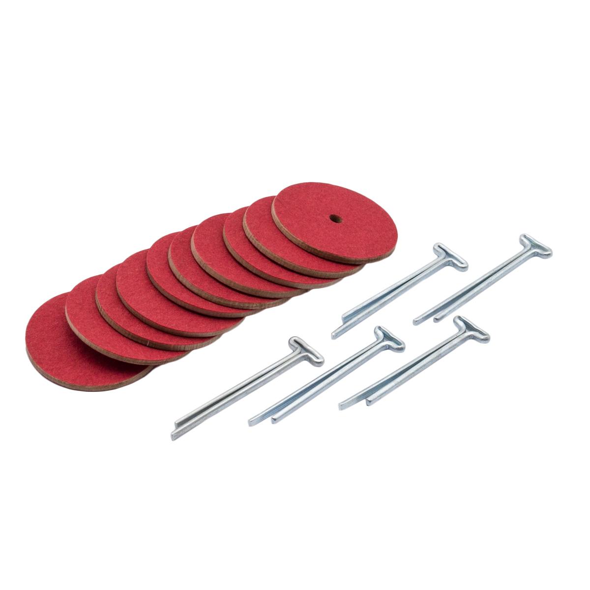 Набор креплений для рук и ног мягкой игрушки. Инструменты используются при создании традиционного плюшевого мишки Тэдди, позволяют сделать голову и конечности игрушки подвижными. В набор входит 5 т-образных шплинтов и 10 фибровых дисков.