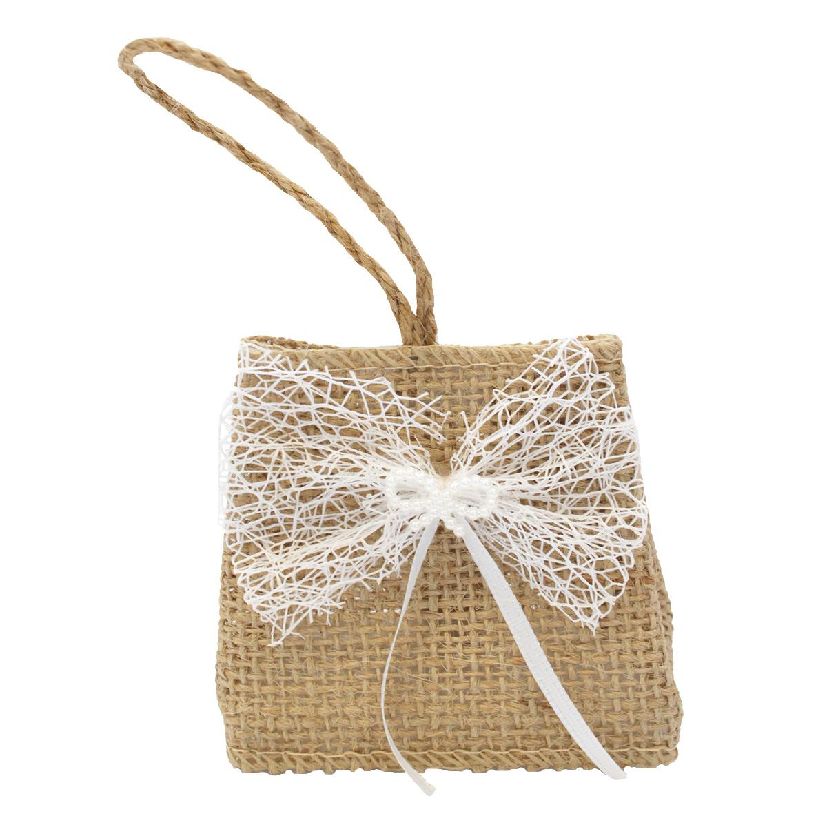 Сумочка трапециевидной формы, как у сумочек типа Келли. Без застежки. Дополнит гардероб декоративной куколки и подойдет для детской игры. Грубый материал полотняного переплетения выгодно контрастирует с воздушным бантиком, тонкими атласными лентами и мелкими искусственными жемчужинами. Ручка-петелька позволяет повесить аксессуар на локоть или запястье куклы.