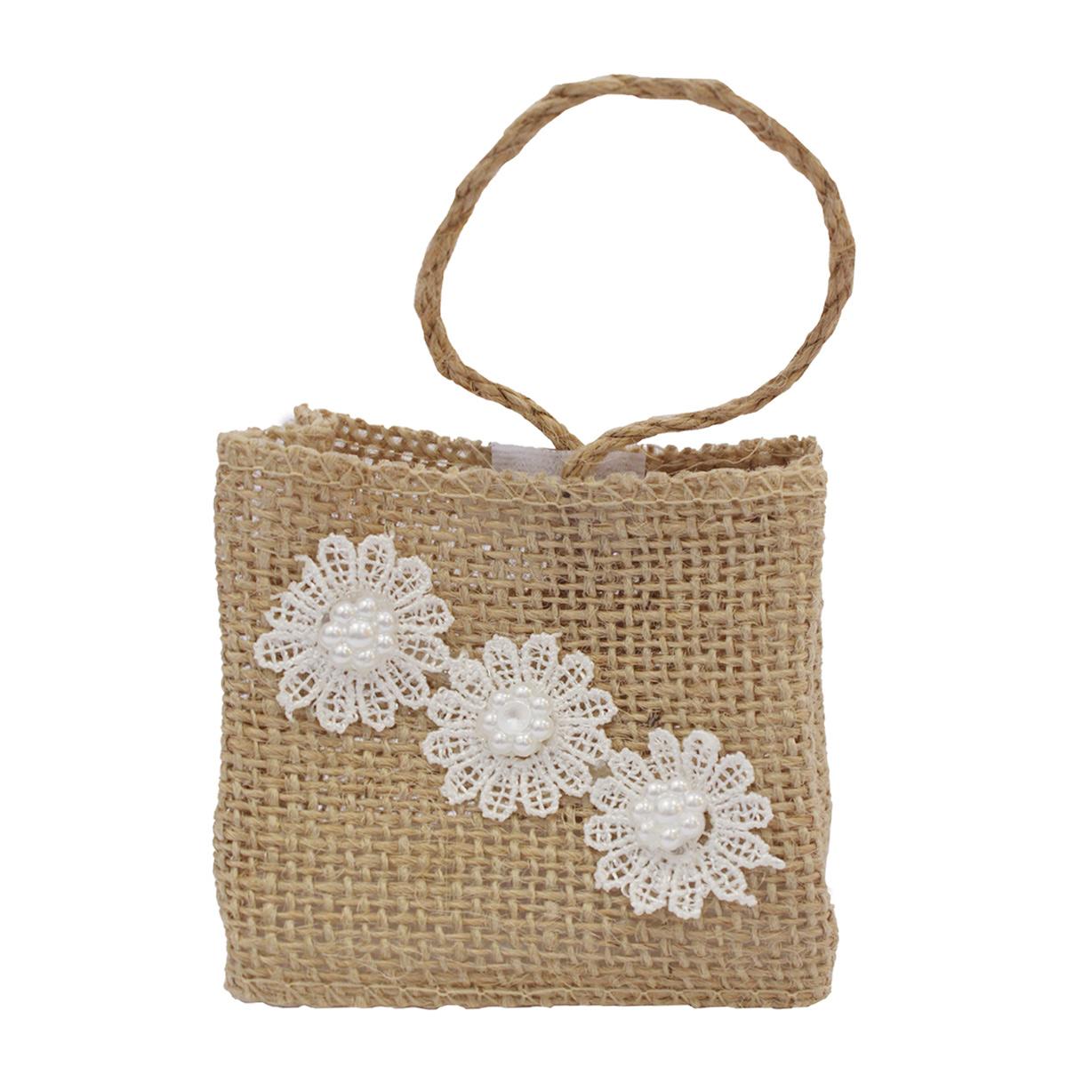 Квадратная сумка-шопер бежевого оттенка. Для повседневной детской игры в куклы, приятный аксессуар для интерьерных куколок из различных материалов. Декорирована тремя кружевными цветками наискосок. При желании украшения можно добавлять. У сумочки имеется удобная лямка-петля.