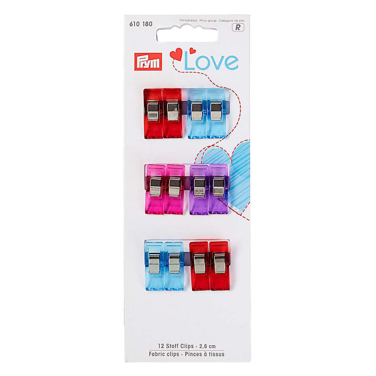 Клипсы для работы с тканями Prym из серии Love порадуют вас не только отличными характеристиками, но и прятным внешним видом. Клипсы являются прекрасной альтернативой стандартным булавкам, которые обычно используют при шитье. Необходимы в тех случаях, когда следы от булавок на ткани остались бы навсегда. Благодаря клипсам материал фиксируется просто, быстро и не повреждается. Клипсы обеспечивают прочное скрепление при прихватывании нескольких слоев тканей. Применяются в пэчворке, шитье, вязании.