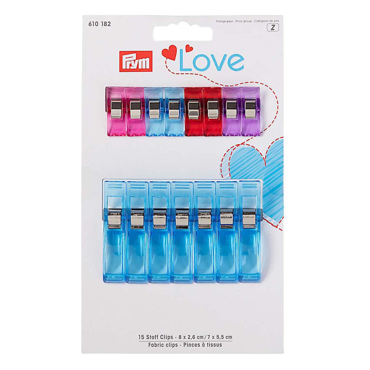 Клипсы для работы с тканями Prym из серии Love порадуют вас не только отличными характеристиками, но и прятным внешним видом. Клипсы являются прекрасной альтернативой стандартным булавкам, которые обычно используют при шитье. Необходимы в тех случаях, когда следы от булавок на ткани остались бы навсегда. Благодаря клипсам материал фиксируется просто, быстро и не повреждается. Прищепки обеспечивают прочное скрепление при прихватывании нескольких слоев тканей. Применяются в пэчворке, шитье, вязании.