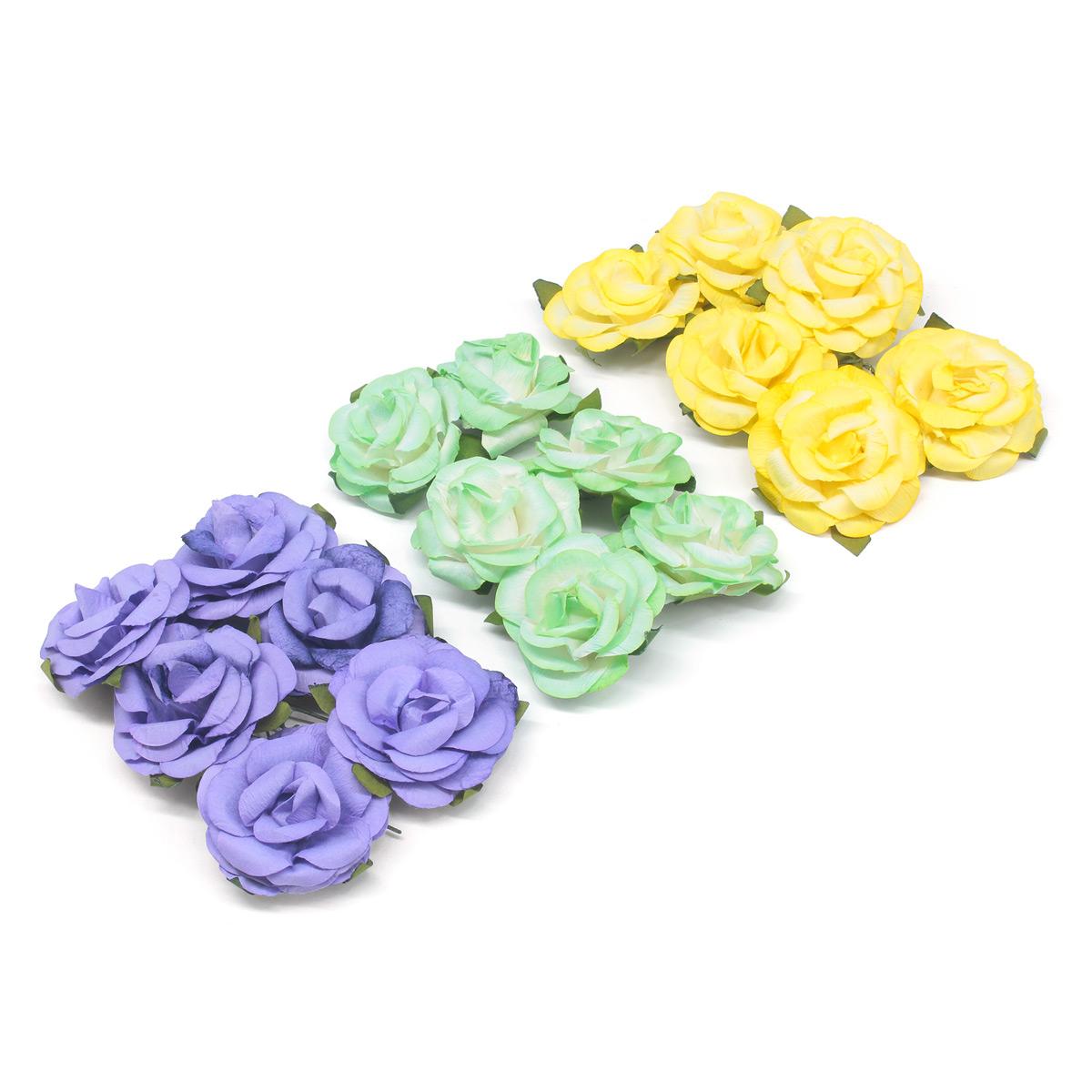 В наборе: декоративные цветы, размер 4,3х2 см, цвет светло-зеленый, светло-фиолетовый, желтый. Всего 18 шт.