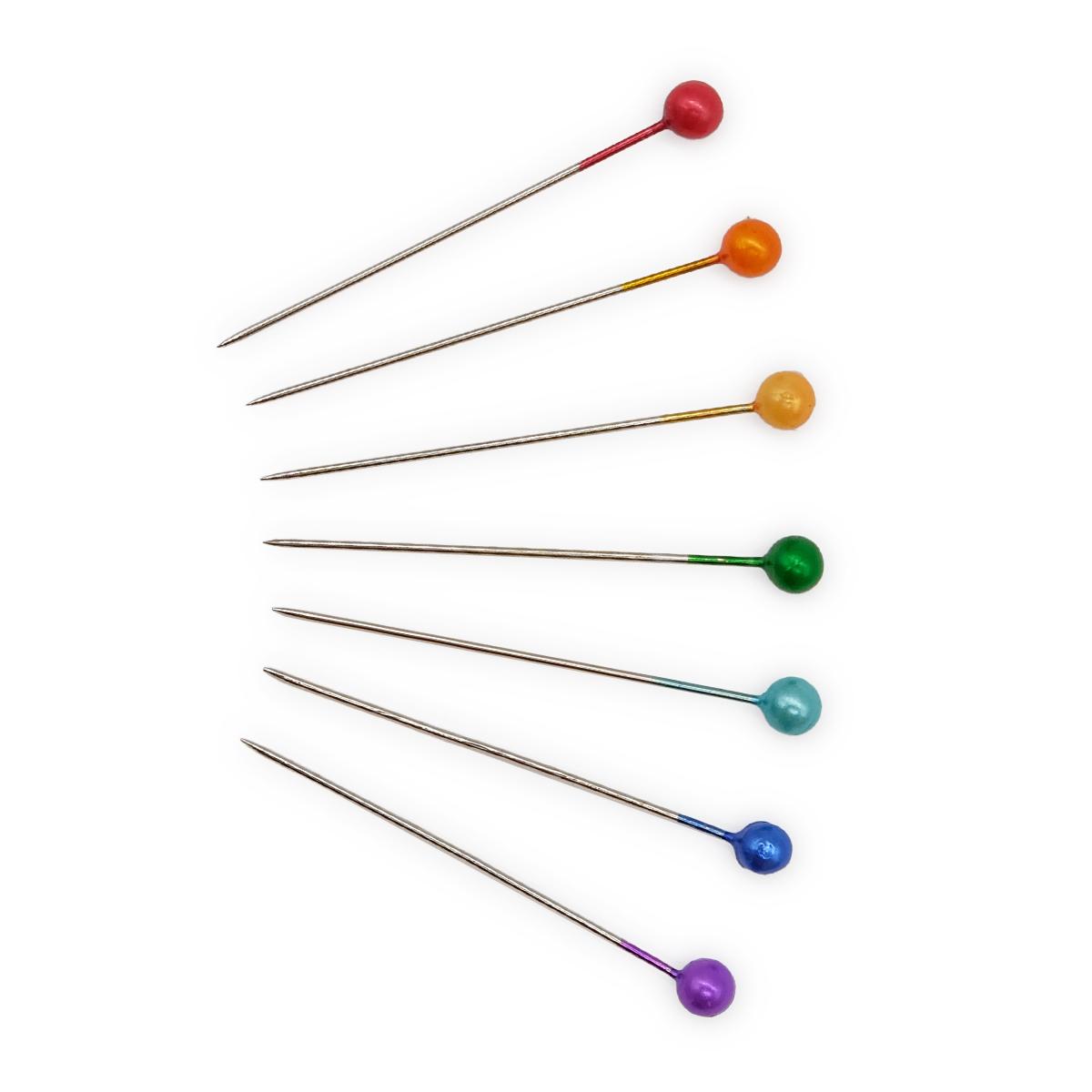Набор портновских булавок с головками, в форме декоративных бусин. Булавка выполнена из металла, декоративный наконечник пластиковый с перламутровым покрытием разных цветов. Наконечник хорошо ложится в руке, отлично виден на изделии, удобен в работе. Предназначены для скалывания отдельных деталей. Применяются при раскрое, примерке, пошиве изделий из текстиля и во многих других видах рукоделия.