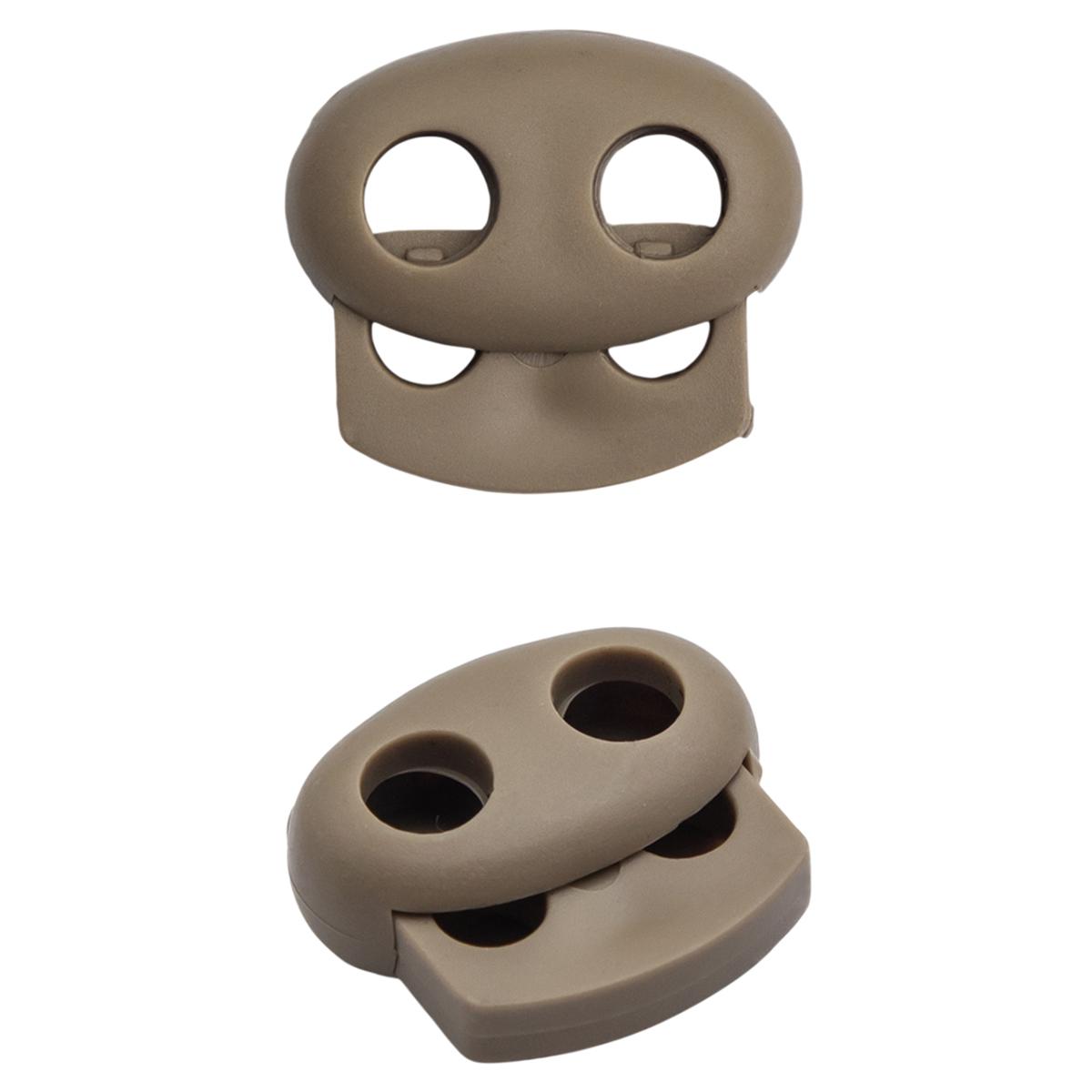 103-М Фиксатор для шнура плоский 14*17мм, 2 отверстия d-4мм, пластик (ПП) бежевый