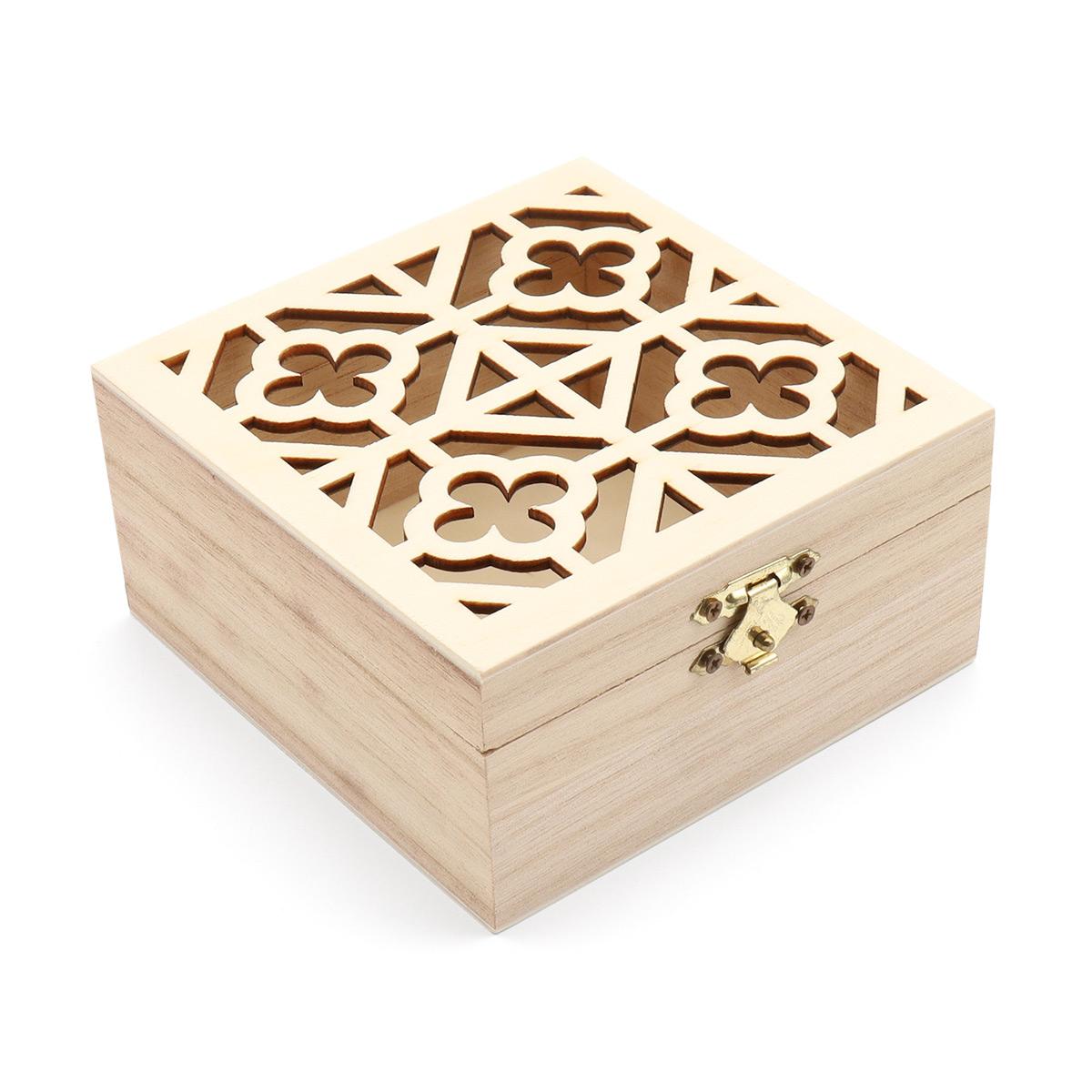 Деревянная шкатулка с ажурным окошком – практичная вещь и уютная деталь интерьера. Храните в ней украшения и любые другие важные мелочи. Корпус шкатулки изготовлен из древесины павловнии, которая легко поддается декорированию. Отдельные элементы заготовки сделаны из фанеры. Образ завершает петля-замок золотистого цвета. Оформите шкатулку на свой вкус, например: