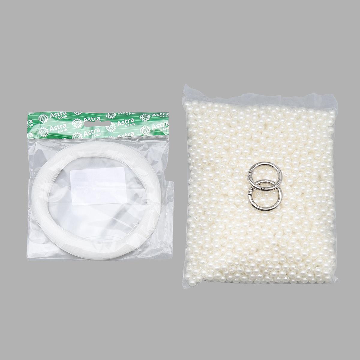 Набор для плетения сумки из бусин 8 мм молочный жемчуг, Astra&Craft