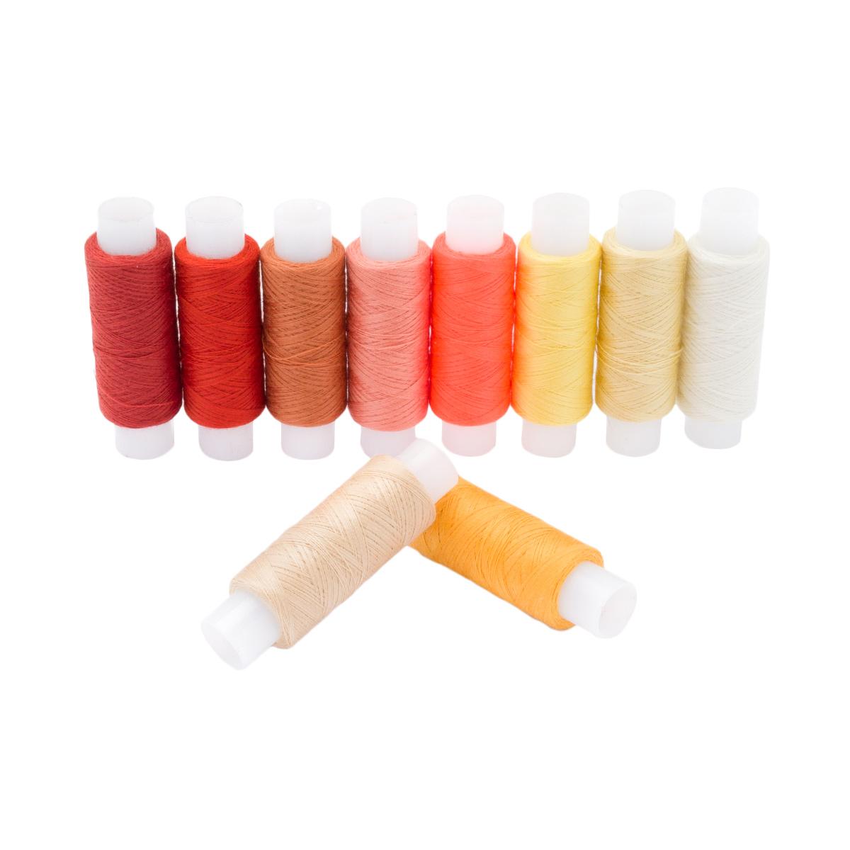 Набор швейных ниток Ассорти №25 №50/2 от Astra&Craft – отличное решение для создания и ремонта изделий в домашних условиях. В комплекте 10 разноцветных бобин, что позволяет воплощать различные идеи. Эти нитки позволят шить одежду из легких тканей, заниматься ремонтом или переделкой одежды, чтобы дать ей вторую жизнь. Подходят также для шитья игрушек и другого рукоделия. Нитки №50/2 – это: – Прочность и надежность: швы будут крепкими, а изделия прослужат вам долго. – Эластичность: нить не стягивает ткань, обеспечивая безупречный результат. – Стойкость к выцветанию: ваши работы будут сохранять свой первоначальный вид надолго. – Универсальность: нитки подходят для различных типов швов и материалов. – Практичность: гладкая поверхность нити без ворсинок облегчает уход за швейной машинкой. Характеристики: Количество сложений: 2. Правосторонняя крутка. Линейная плотность: 11,8 x 2 текс. Разрывная нагрузка: 820сН. Производитель рекомендует использовать универсальную машинную иглу №70-80. Продается в бобинах бытовой намотки по 200 м, по 10 штук разных цветов в упаковке.