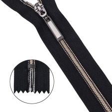 Застежка-молния – это важный элемент гардероба в межсезонье, а во многих дизайнерских коллекциях ее используют как декоративную деталь. У обычных витых застежек-молний зубчики по цвету не отличаются от тесьмы и выглядят нейтрально. У декоративных молний звенья, наоборот, дополнительно окрашены, например, под цвет никеля, золота, серебра или состаренной бронзы. Так они выглядят ярко, особенно в сочетании с контрастной тесьмой. Нарядной деталью может стать также слайдер замка, если у него изящная форма.