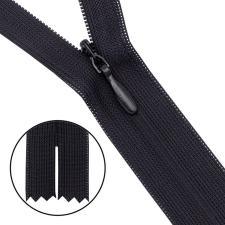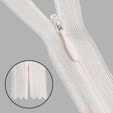 Потайные застежки-молнии – разновидность спиральных молний. Звенья таких застежек, образованные из тонкой пластиковой спирали (3 мм сомкнутом виде), расположены на изнаночной стороне и совсем не заметны. При ношении эти звенья не царапают кожу. Особенности конструкции позволяют смело использовать тонкую потайную застежку-молнию для пошива одежды с прилегающим силуэтом – платьев, брюк, юбок, блузок.